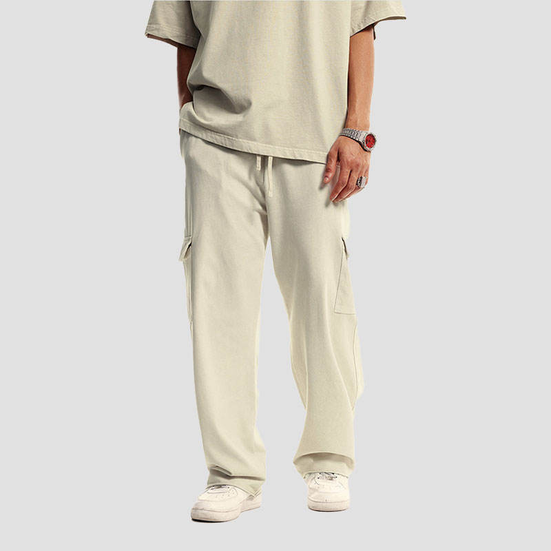 358GSM Custom Casual Multi Pocket Straight Outdoor 100% Cotton Breathable Drawstring Closure Cargo Pants Men's Street Style