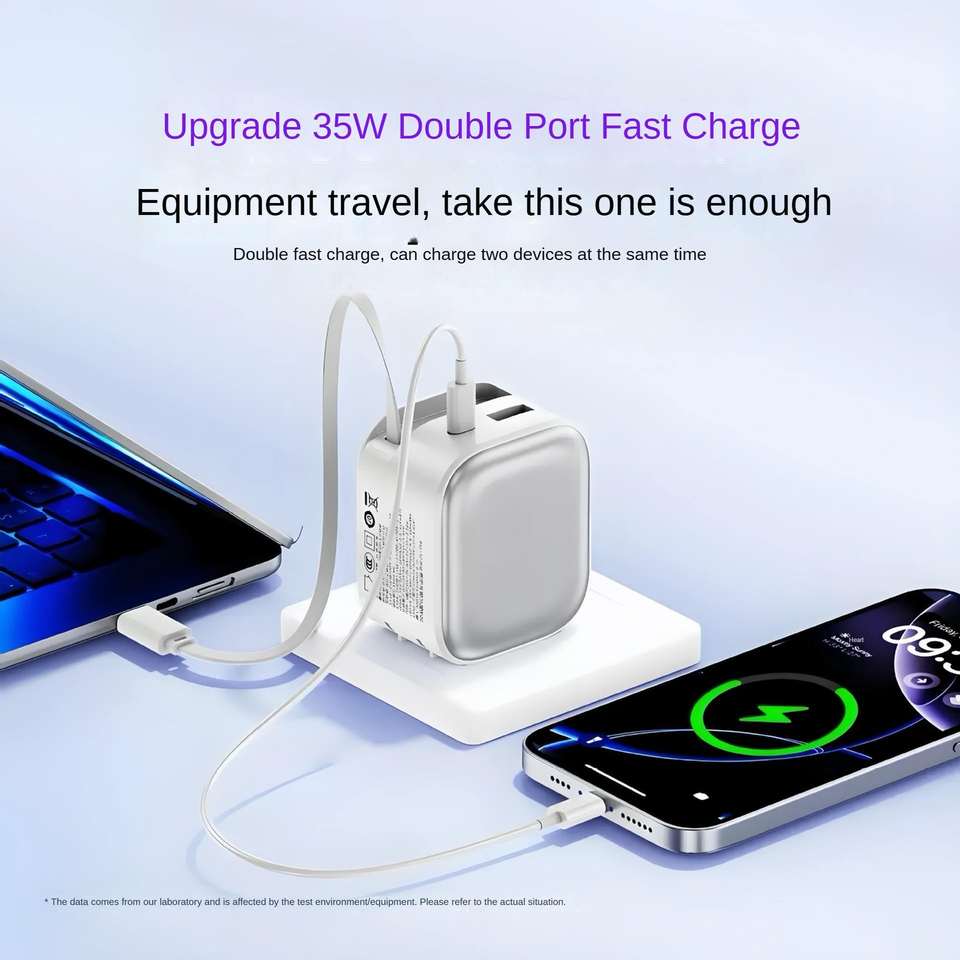 35W GaN Dual USB+Type C Charger For iPhone Adapter with Retractable Cable 35W Type C Charger For iPhone Cable Phone Charger