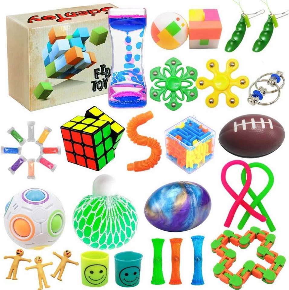 35pcs Cube Foam Ball Sensory Fidget Toys Novelty Pop Keychain for Kids & Adults Anxiety Relief Portable Bubble Pop Gag Toy