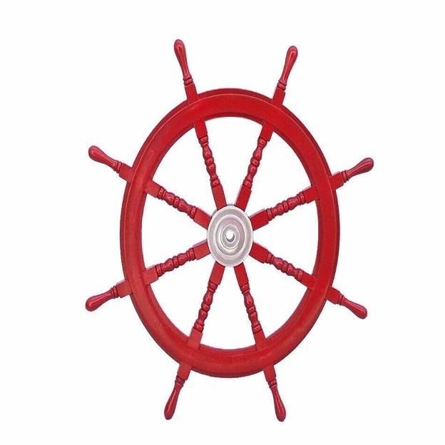 36-Inch Antique Wooden Steering Wheel Red Teak Brass Nautical Pirate Gift Polished Metal Technique