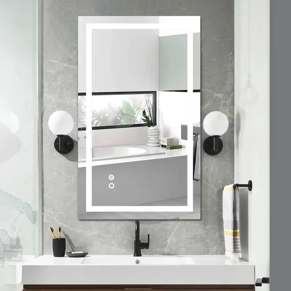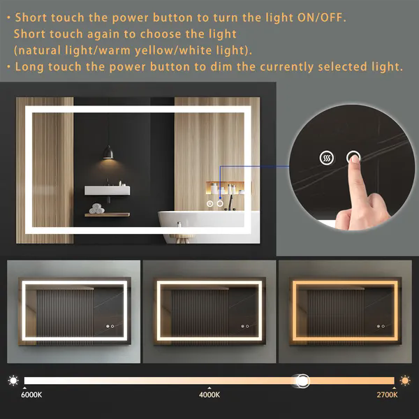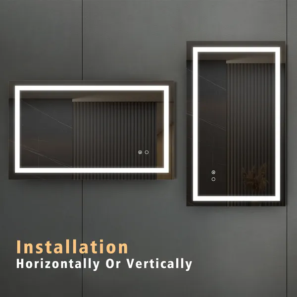 36 X 28 Inch LED Glass Bathroom Vanity Mirror Wall-Mounted Aluminum Frame Anti-Fog Stepless Dimmable Modern Design Adjustable