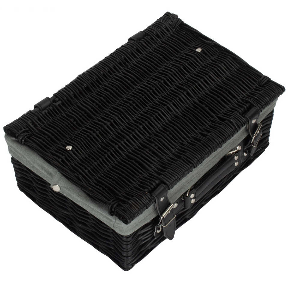 36 cm Black Willow Picnic Basket with Cotton Lining Large Empty Picknickkorb
