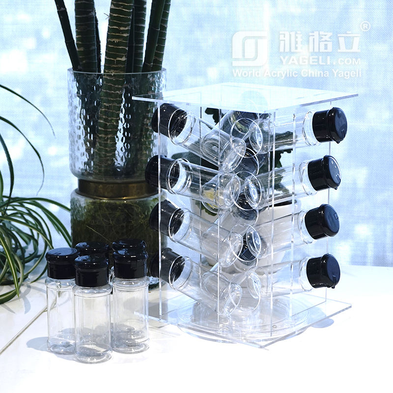 360 Rotating 16 Holes Desktop Transparent Acrylic Spice Rack Shelf Lucite Seasoning Holder for Kitchen
