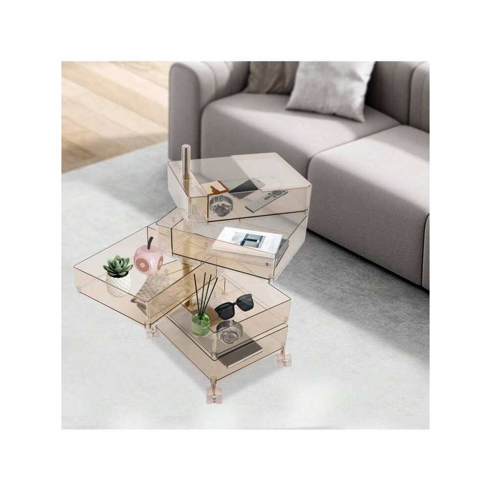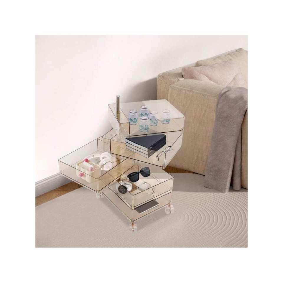 360° Rotating 5-Tier Bedside Storage Cabinet New Style Easy Open Storage Stand with Wheels Home Organization