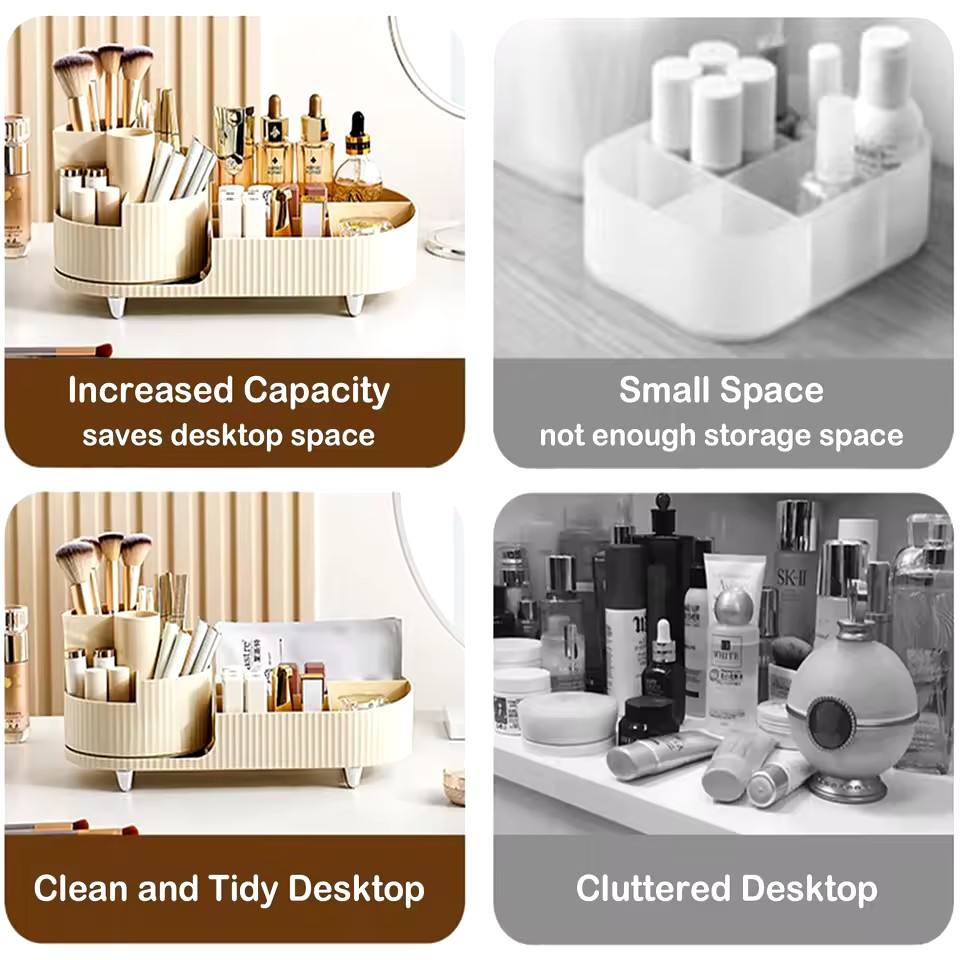 360 Rotating Makeup Organizer for Vanity with Brush Holder, Large Spinning Cosmetic Storage Box for Countertop Bathroom Dresser