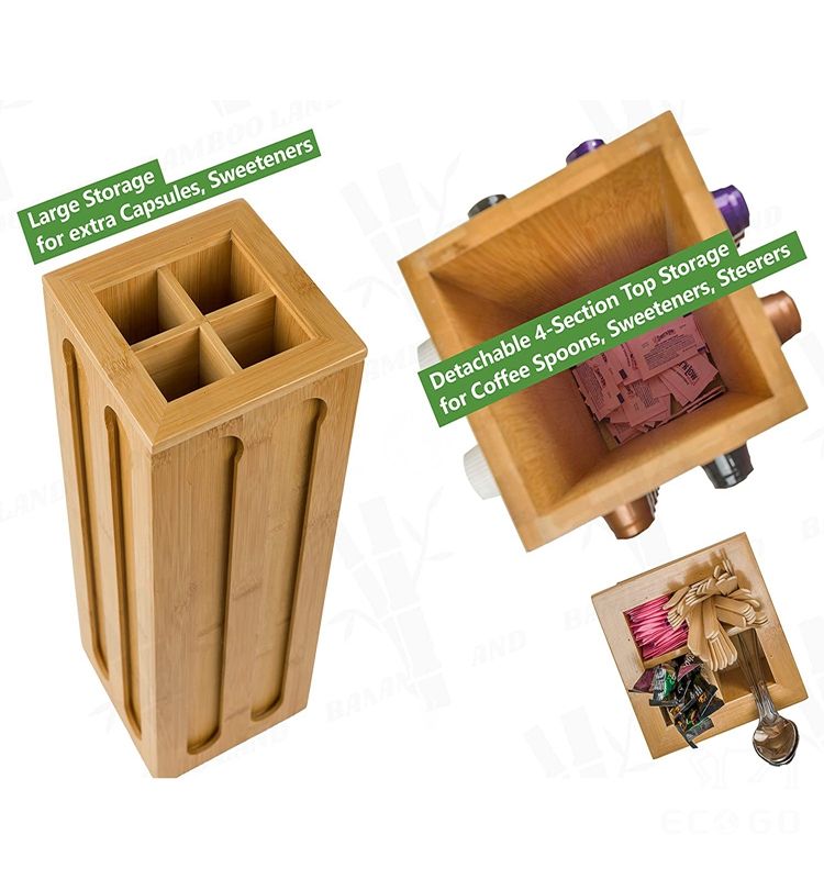360-degrees Bamboo Wood Coffee Pod Organizer Storage for Nespresso, Coffee Capsules Rack Holder