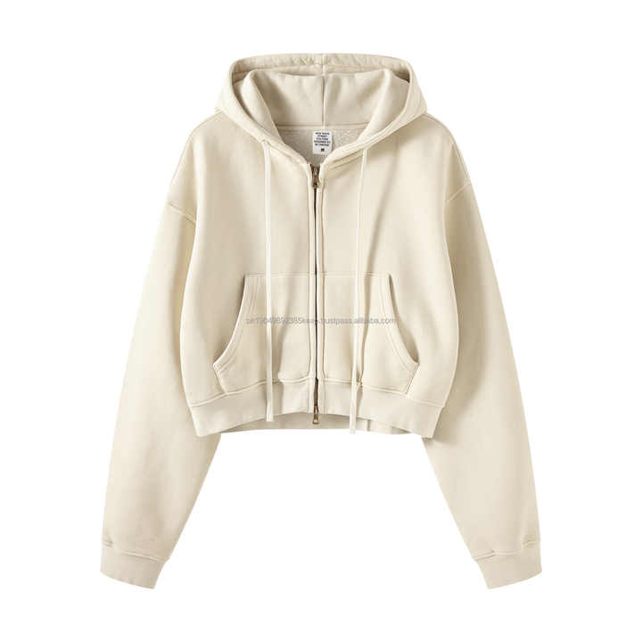 360Gram Fleece zipper cotton made Hoodie women's Fashion hoodies zipper Jacket solid color dyed casual wear Cropped Hoodie