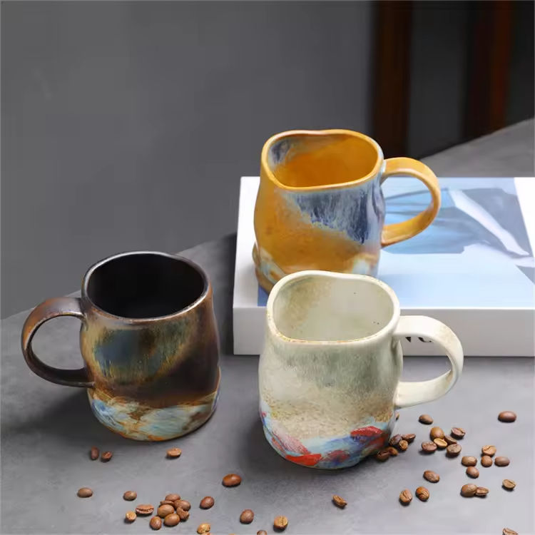 360ml retro American porcelain coffee tea milk cup creative embossed ceramic accessories hot-selling travel cup
