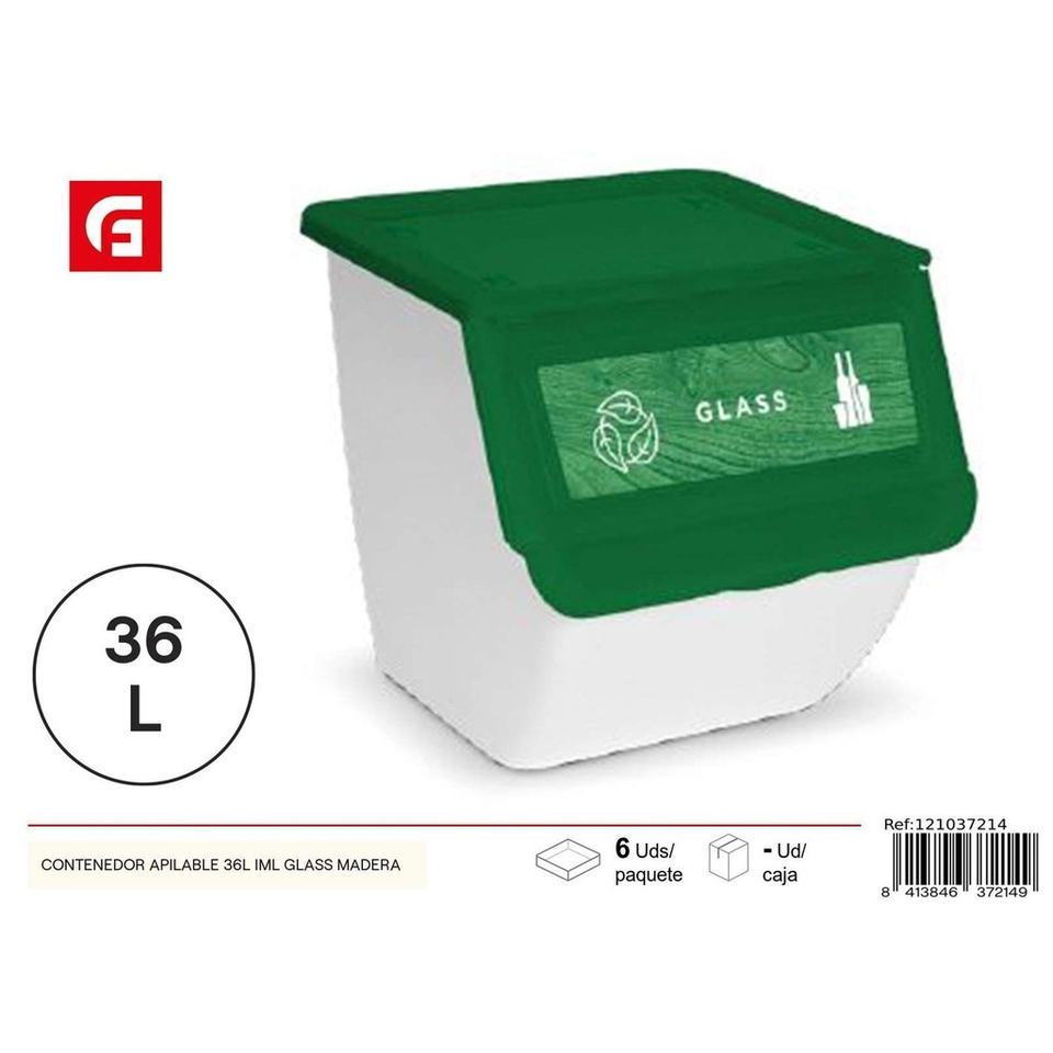 36L IML Stackable Container Glass Wood - Plastic Storage