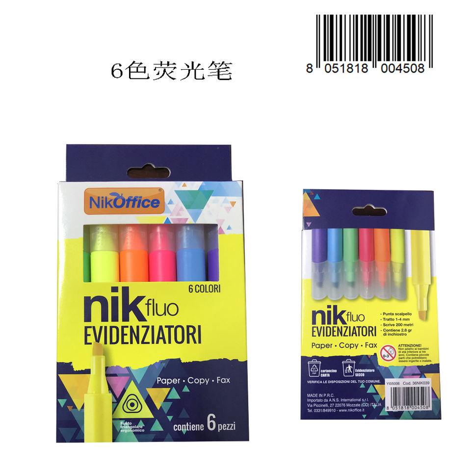 36NIK039 6 Color Highlighter Pens 12PCS Office Supplies Wholesale Stationery 6 color highlighter pens office supplies wholesale