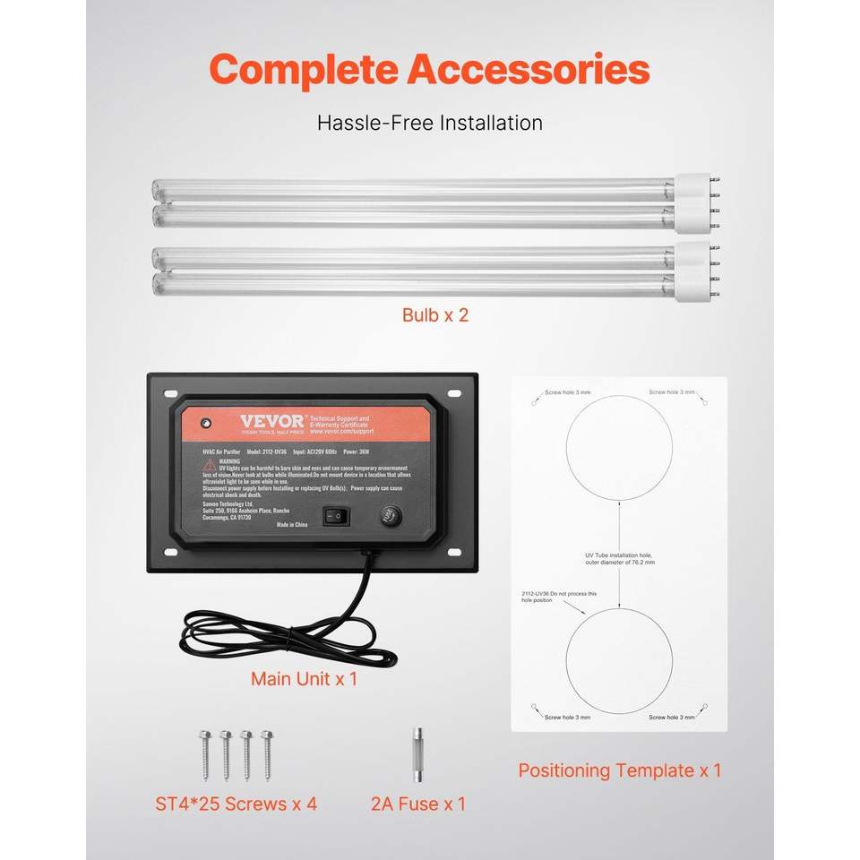 36W 16-inch UV Light HVAC Air Purifier for Whole House Commercial Purifiers for AC Systems