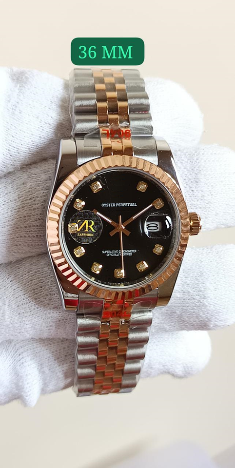 36mm Two-Tone Mechanical Watch Black Dial Diamond Hour Markers Hidden Clasp Luxury Sport Style High Quality