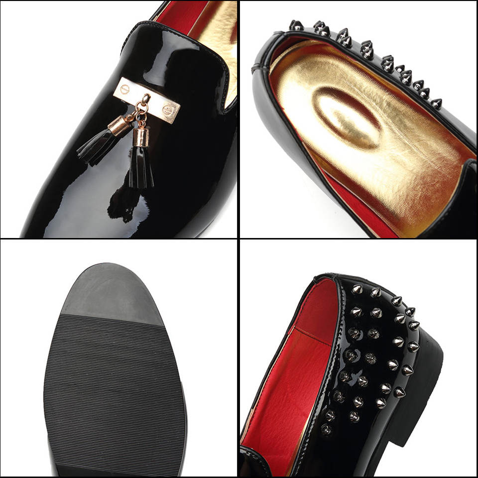 37-48 Big Size Men Women Black Mirror Tassel Loafers Rivet Causal Loafers Shoe 3302