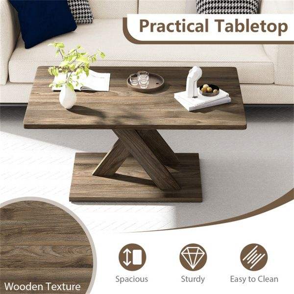 37.5 Inch Rustic Brown Coffee Table with Geometric Design and Wood Texture Durable Rubber Wood Plywood Frame