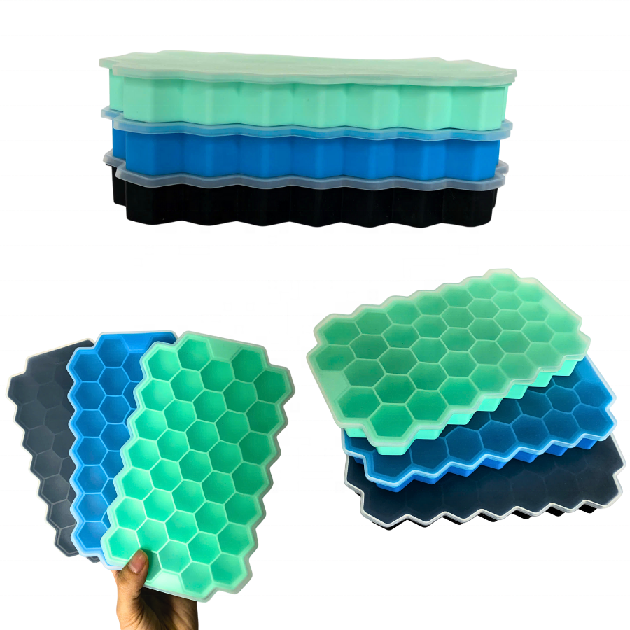 37 Holes Honeycomb Shape Silicone Ice Cube Trays with LidName