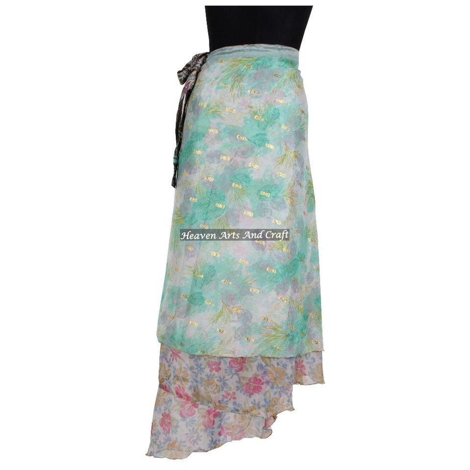 38-Inch Plus Size Multilayer Magic Silk Long Wrap Skirt Vintage Hippie Indian Silk Saree with Bohemian Halter for Summer