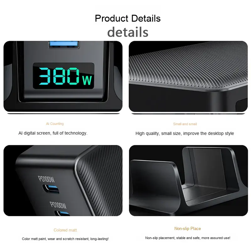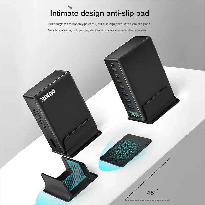 380W Gallium Nitride Charger Fast Charging Head 8-Port Smart Digital Display Charging Station GaN usb multi wall charger