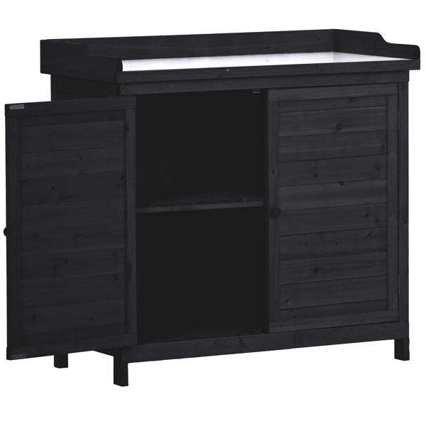 39\" Rustic Garden Potting Bench Table Outdoor Wood Workstation with Storage Cabinet Garden Shed 2 Tier Shelves Side Hook