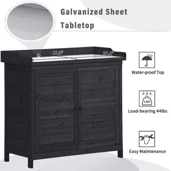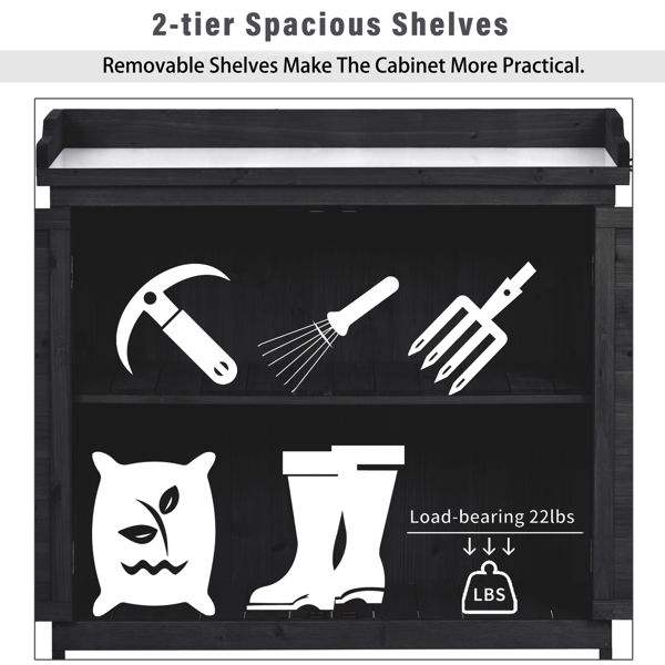 39\" Rustic Garden Potting Bench Table Outdoor Wood Workstation with 2 Tier Shelves Side Hook Storage Cabinet and Garden Shed