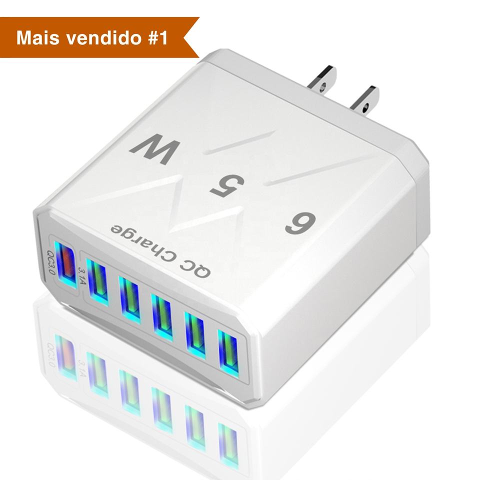 3D 65W GaN Desktop Charger 6-Port USB PD Charger Quick Charge 3.0 USB Type C Fast Charger Desktop PD QC USB C Charging