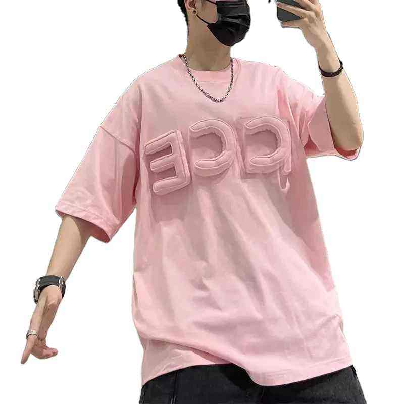 3D Embossed Logo T Shirts for Men Custom Cotton Oversized Streetwear Drop Shoulder Casual Tee Summer Fashion T Shirt Bulk