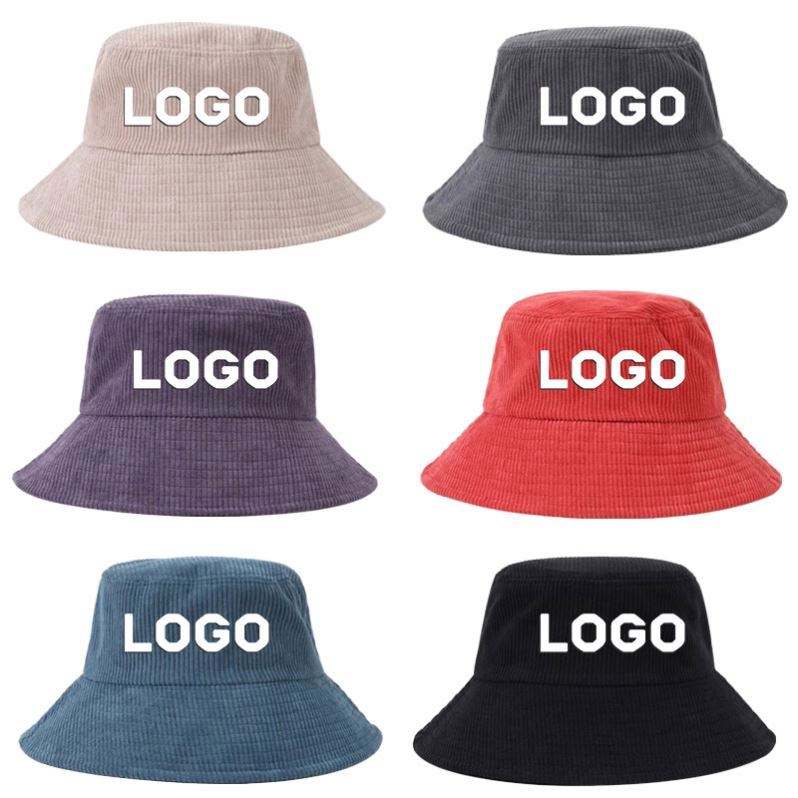 3D Embroidery Logo Character Winter Customized Plain Corduroy Blank Bucket Hat Inside Pocket Bulk Fishermen Hats