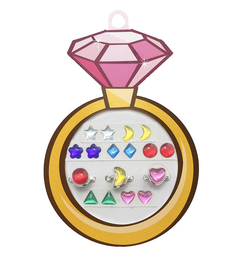 3D Epoxy Sticker with Diamond Card (7 Pairs of Stick-on Earrings & 3 pcs Rings)