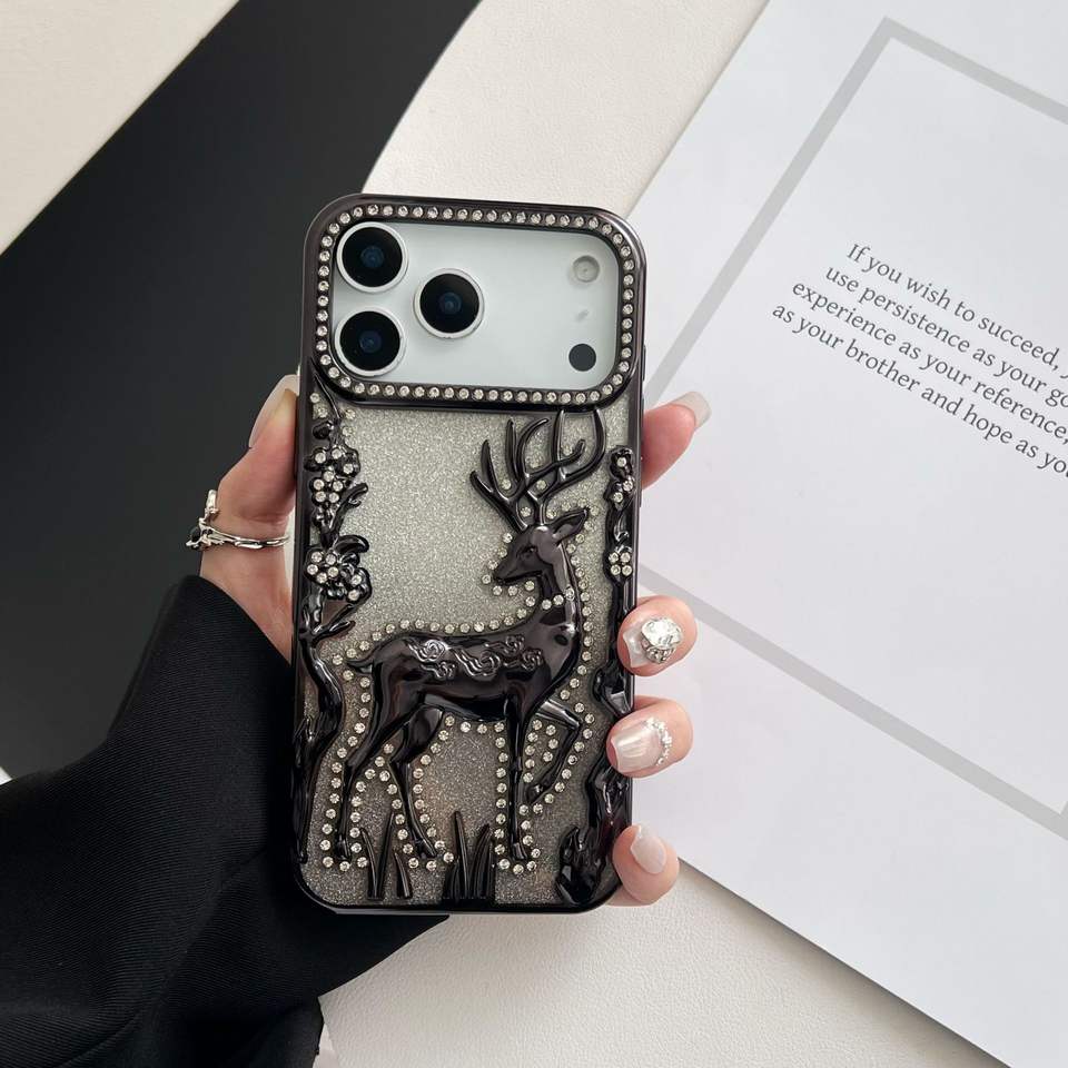 3D Glitter Deer Diamond Christmas Cell Phone Case for iPhone 17 Air 16 15 14 13 12 Pro Max Plus Elegant Mobile Case for 17 Pro