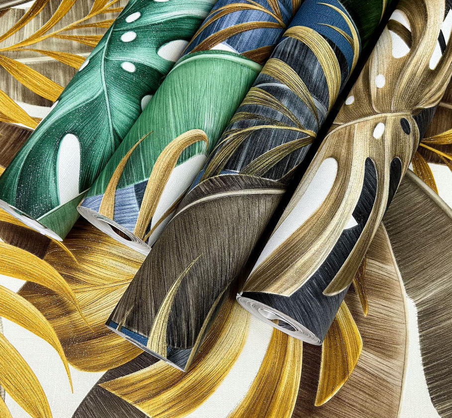 3D Grace Vinyl Wallpaper Tropical Fabric Wallpaper Elegant Leaf Pattern Wallpaper for Office Hotel Bar Wall