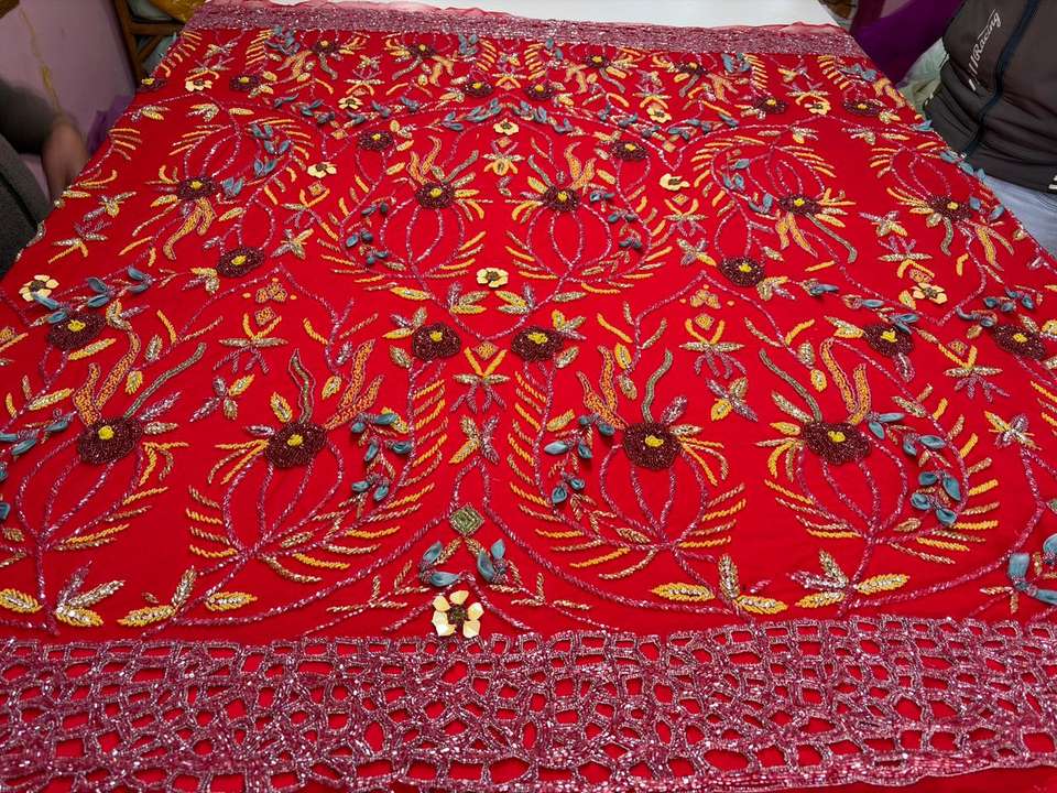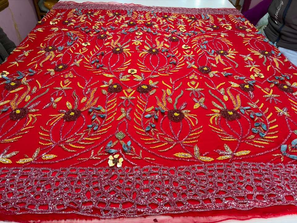 3D Hand Beaded Embroidered Fabric