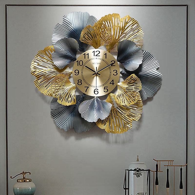 Product name:Metal Ginkgo Luxury Wall Clock For Home Decoration Reloj De Pared