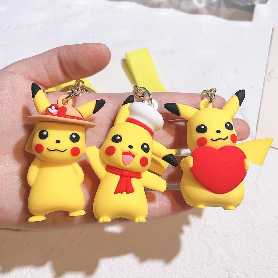 3D PVC Cartoon Anime Keychain Kawaii Rubber Action Figure Pikachu Poke Mon KeyChains Charmander Snorlax Squirtle Key Chain