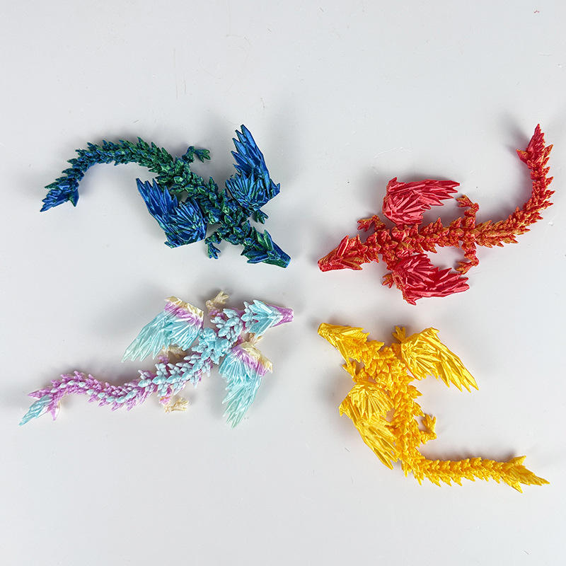 3D Printed Colorful Crystal Flying Dragon Toy Model Graduation Gift Desktop Ornament Handicraft Joint Movable