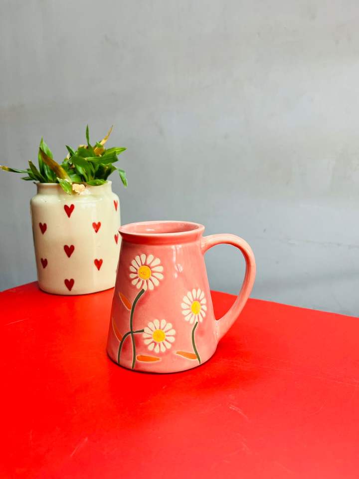 3D Printed Flower Ceramic Mug 300 ml Handmade Coffee Cup for Girls Women Microwave Safe Gift for Birthday Valentine Anniversary