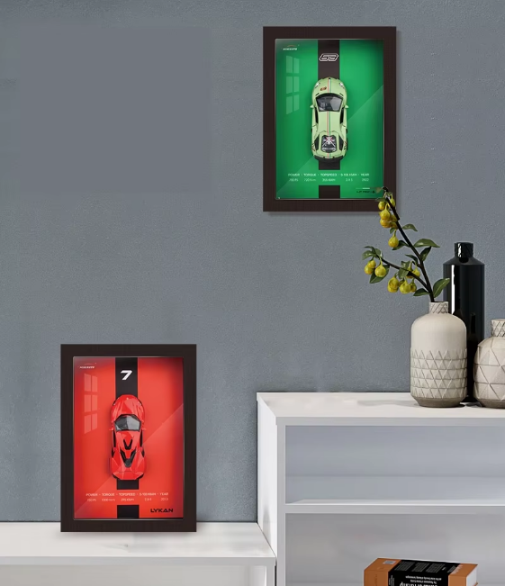 3D Wooden Photo Frame With Vehicle 1/32 Diecast Metal Miniature Toy Car Classic Alloy Toy Collectible Super Metal Car Model Kit