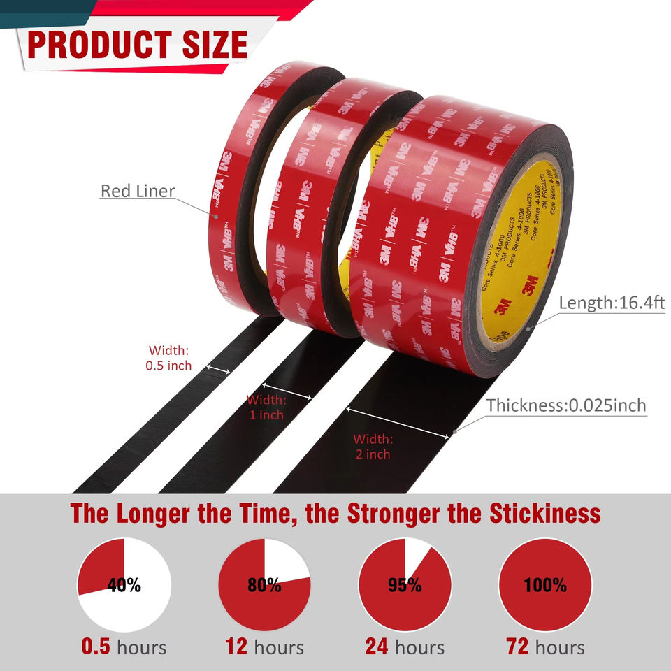 3M Double-Sided Tape VHB 5925 Black Heavy-Duty Waterproof Foam Tape Suitable for Rv Led Light Strip Decoration