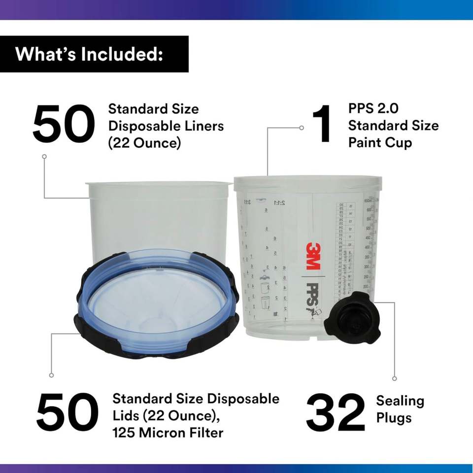3M PPS 2.0 Spray Gun Cup, Lids and Liners Kit, 26301, Standard, 22 Ounces, 125-Micron Filter