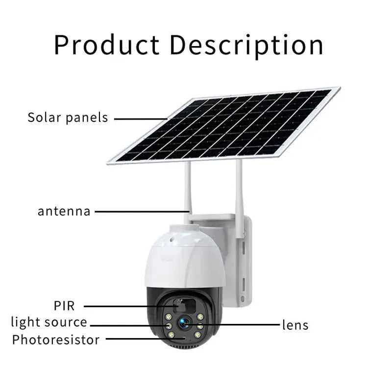 3MP Solar-Powered WiFi 4G Sim Card Panel Home Outdoor Security CCTV Camera Wireless Battery-Powered 2K Resolution PTZ WiFi