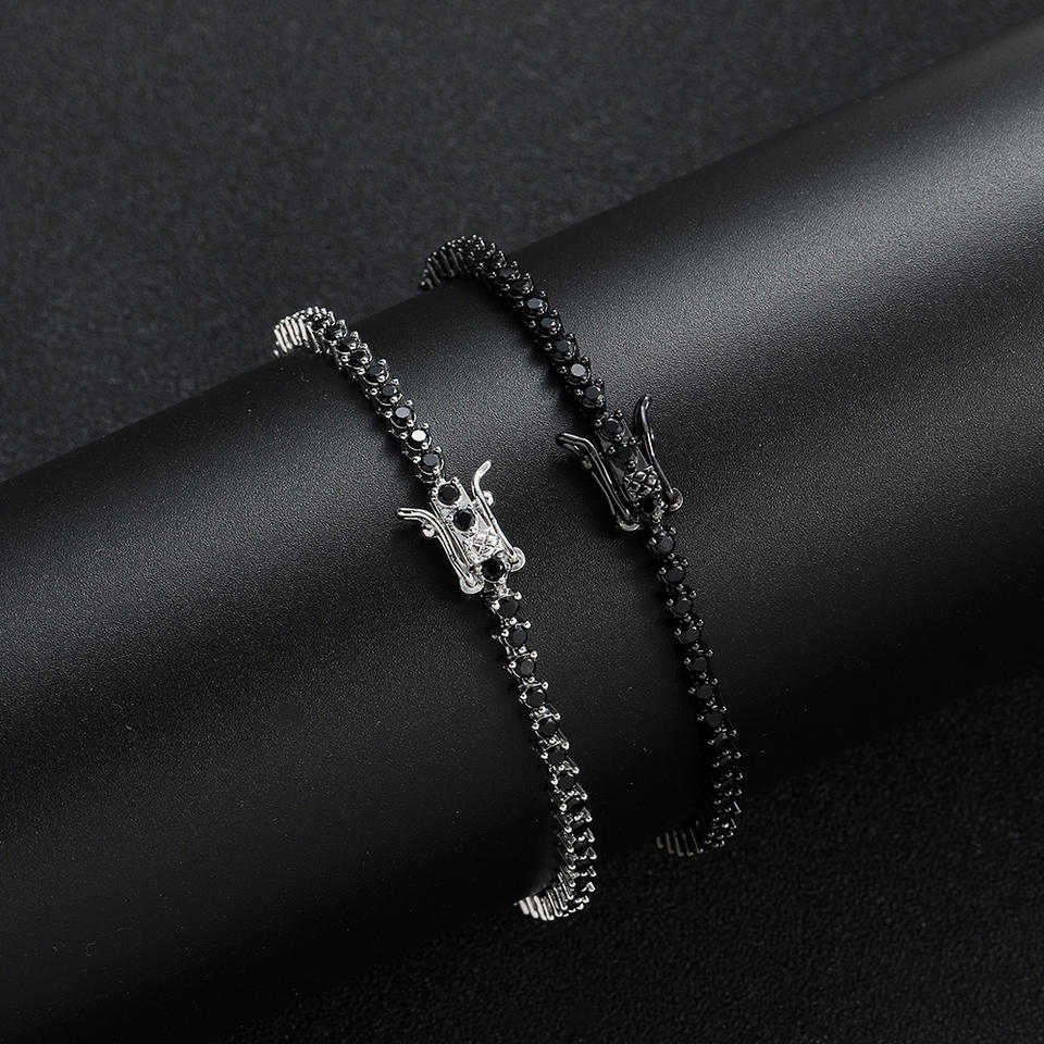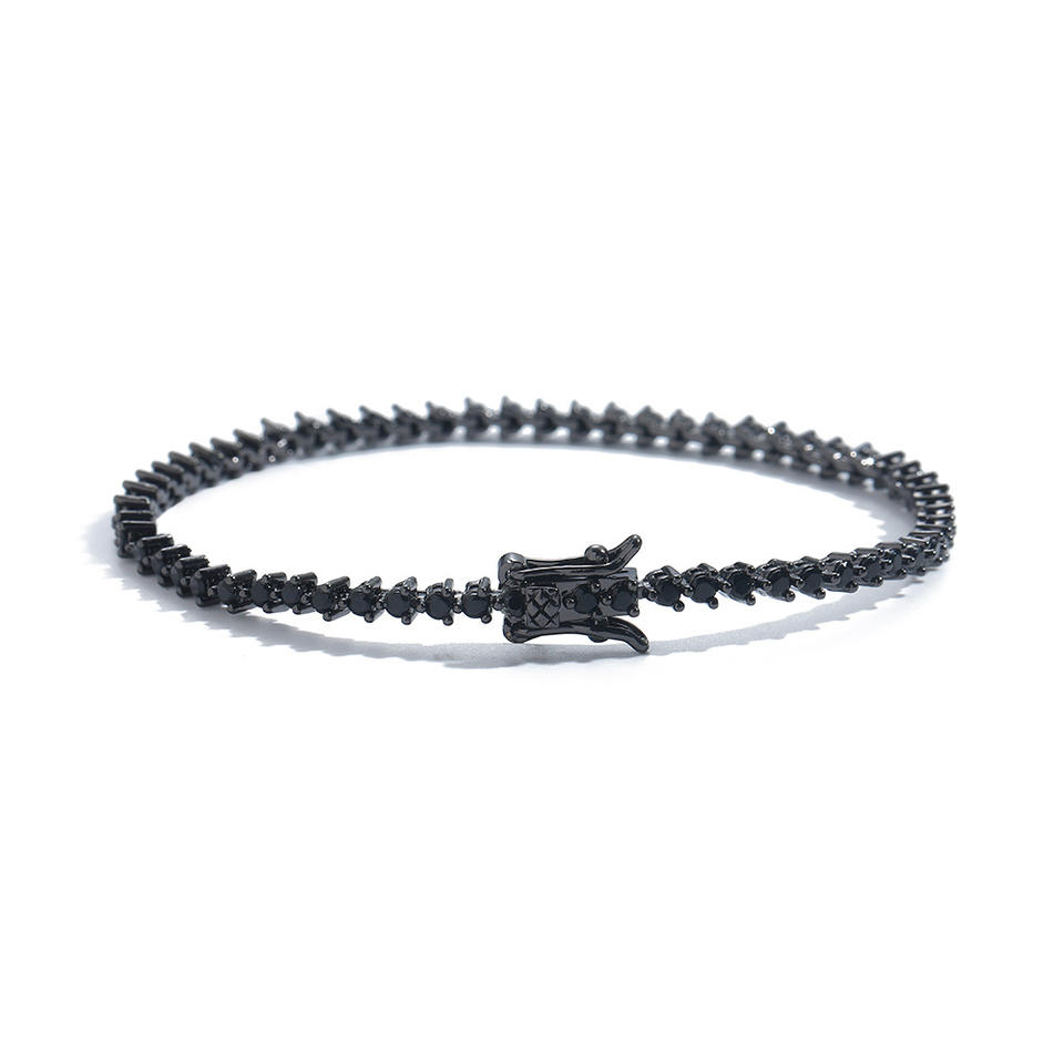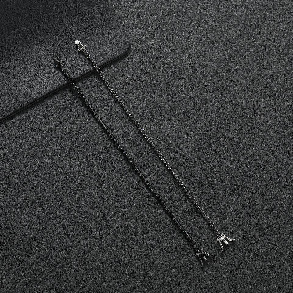 3Mm Wide 3-claw Copper Inlaid Zircon Black Tennis Bracelet 2mm Stone Tanjing Fashion Lijing Necklace