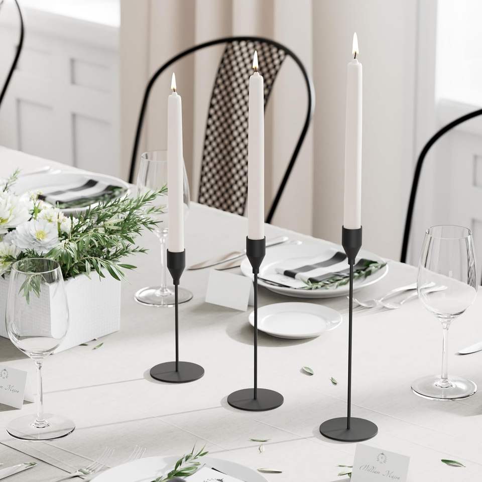 3PCS Black Metal Candle Holder Sticks Set for Pillar and Taper Candles Perfect for Wedding Table Centerpiece and Home Decor