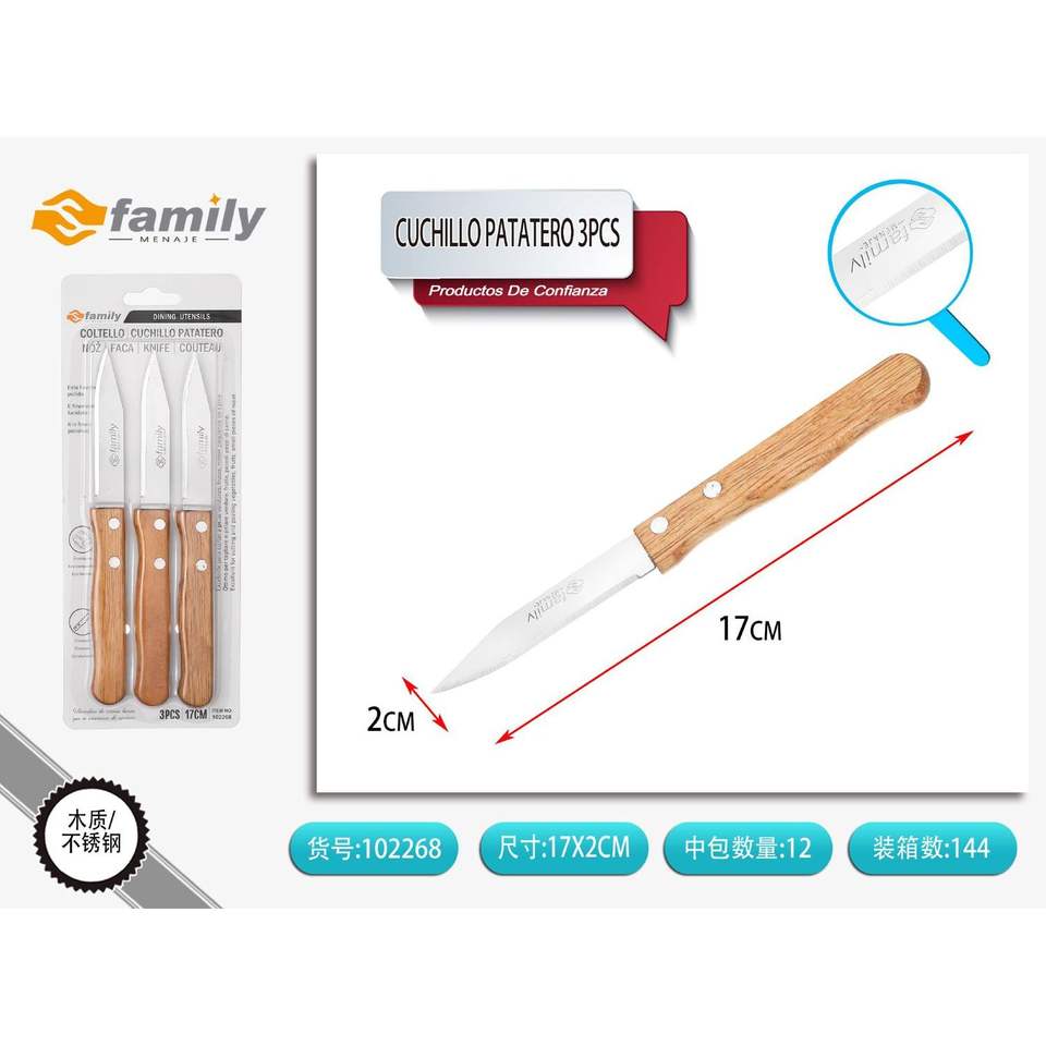 3PCS Kitchen Utensils-Stainless Steel Chef Knife Set with Oriental Design Wood Handle for Cutting Potatoes