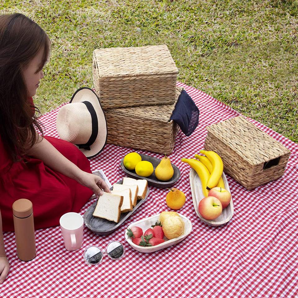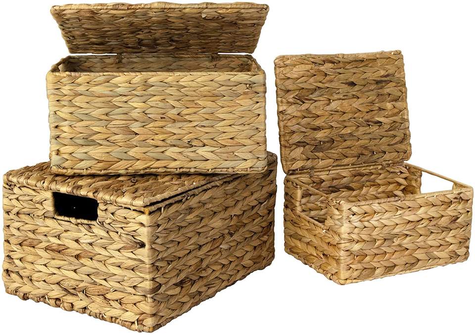 3PCS Vietnamese Wholesale Handmade 100% Water Hyacinth Storage Baskets with Lids and Insert Handles for Home Organization