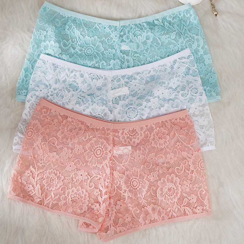 3Pcs Set Women Lace Panties Sexy Sheer Floral Briefs Seamless Boyshort Female Underwear Breathable Transparent Knickers Pack