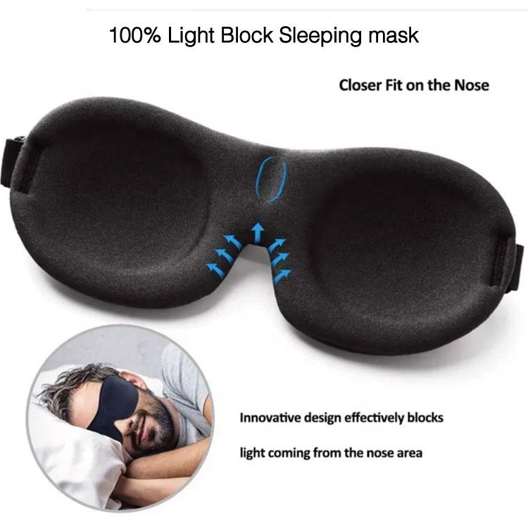 3D Memory Foam Adjustable Strap Anti-Wrinkle Blackout Sleep Mask Cover Perfect Night Sleep Aid Black Color Eye Health Dark