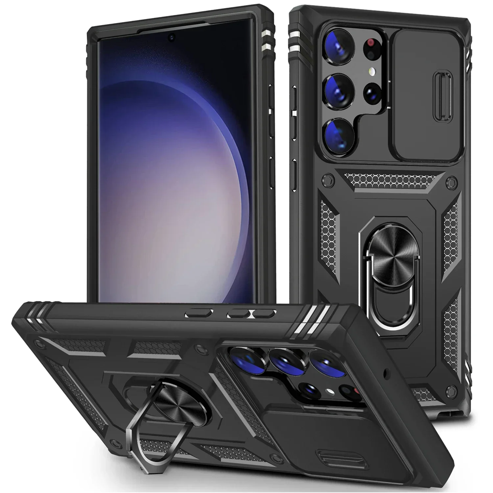 3in1 Heavy Duty with Camera 360 Degree Rotate Kickstand Camera Slide Lens Case for Samsung Galaxy S25 Ultra S24 Ultra