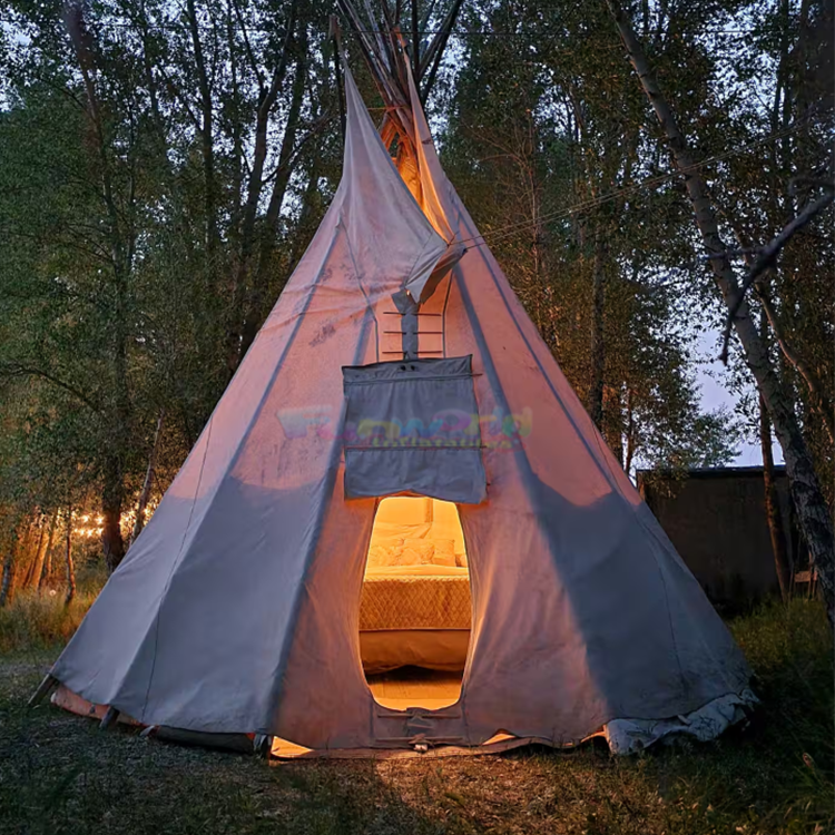 3m 4m 5m Family Camping House Oem Odm Canvas Oxford Teepee Bell Glamping Tent Wall Yurt Camping Tent
