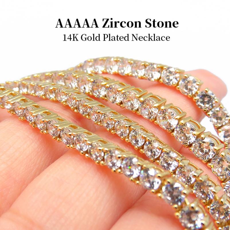 3mm 4mm 5mm Brass Zircon Link Chain Trendy Unisex Hip Hop Jewelry Environmental Friendly Gold Silver CZ Iced Out Necklace