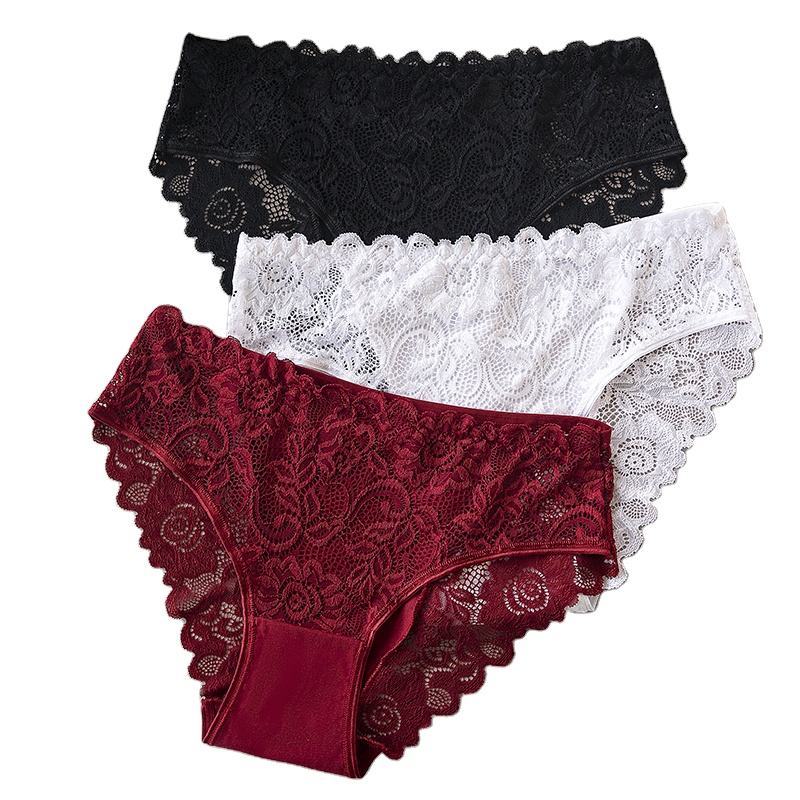 3pcs Luxury Floral Embroidery Lace Panties Set Breathable 3D Sexy Hollow Briefs for Women
