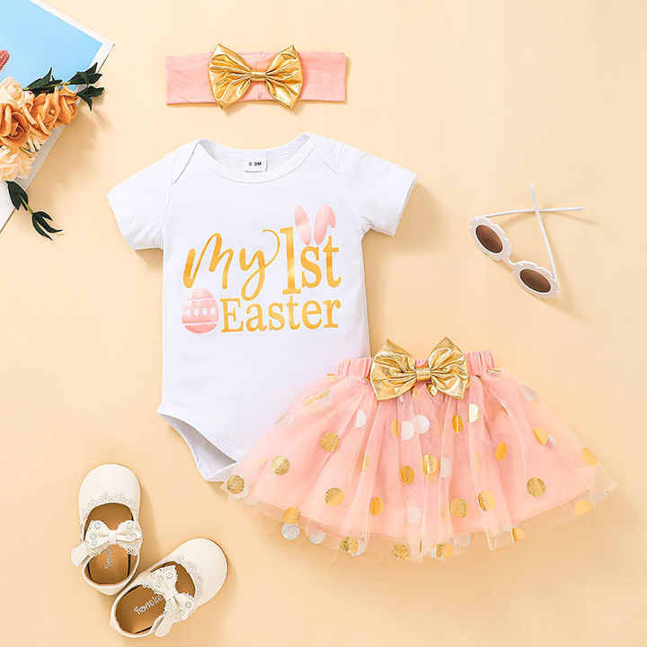 3pcs Newborn Baby Girls Clothes Sweet 1st Easter Party Baby Set