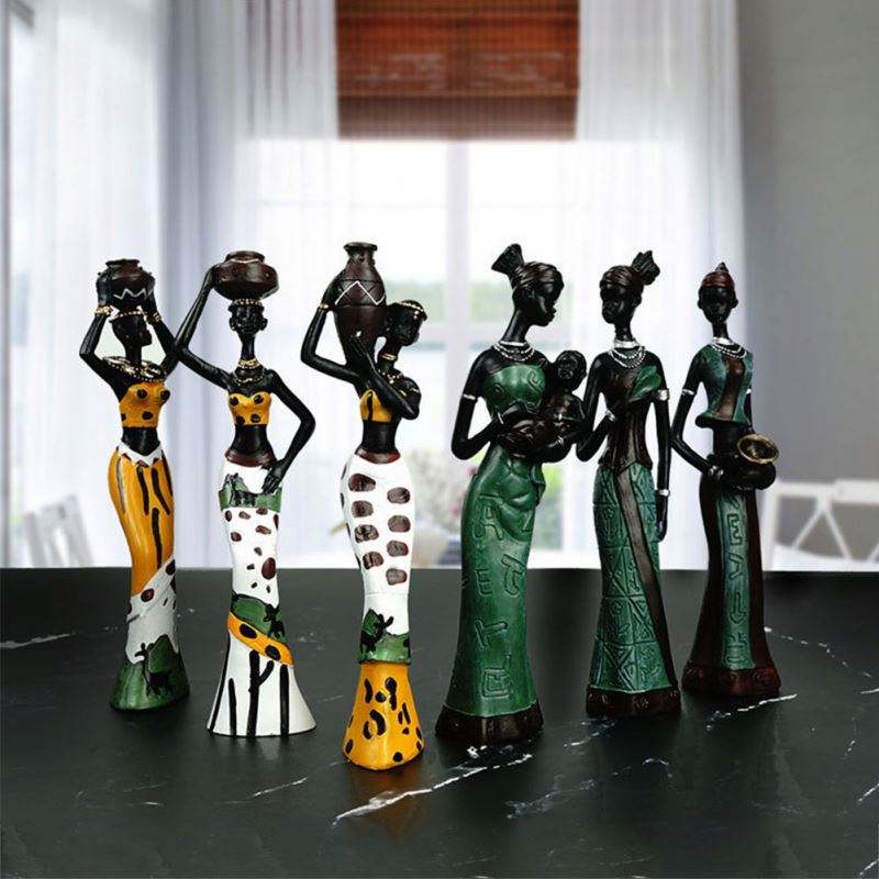 3pcs Set African Figure, Women Sculpture Tribal Lady Figurine Statue Decor Resin Crafts Gift Desktop Ornaments Decoration/